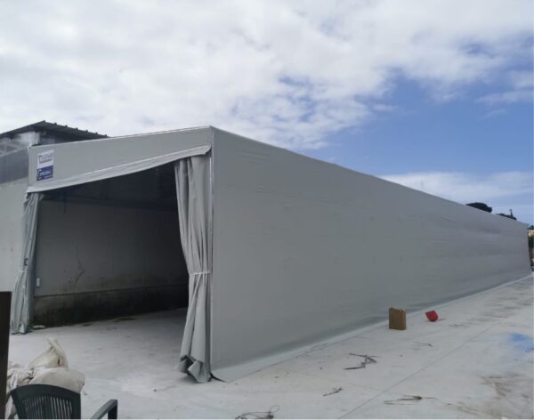 Tra i montanti sono inseriti dei pantografati in profilo zincato, che scorrono sugli stessi per mezzo di un sistema studiato appositamente dagli ingegneri della Coprikompatt. Il trattamento superficiale dell’acciaio utilizzato per la costruzione dei capannoni Copritutto CTZ è la zincatura a bagno caldo per immersione che garantisce la piena penetrazione dello zinco fuso a protezione di tutti gli elementi strutturali che compongono i nostri prodotti.