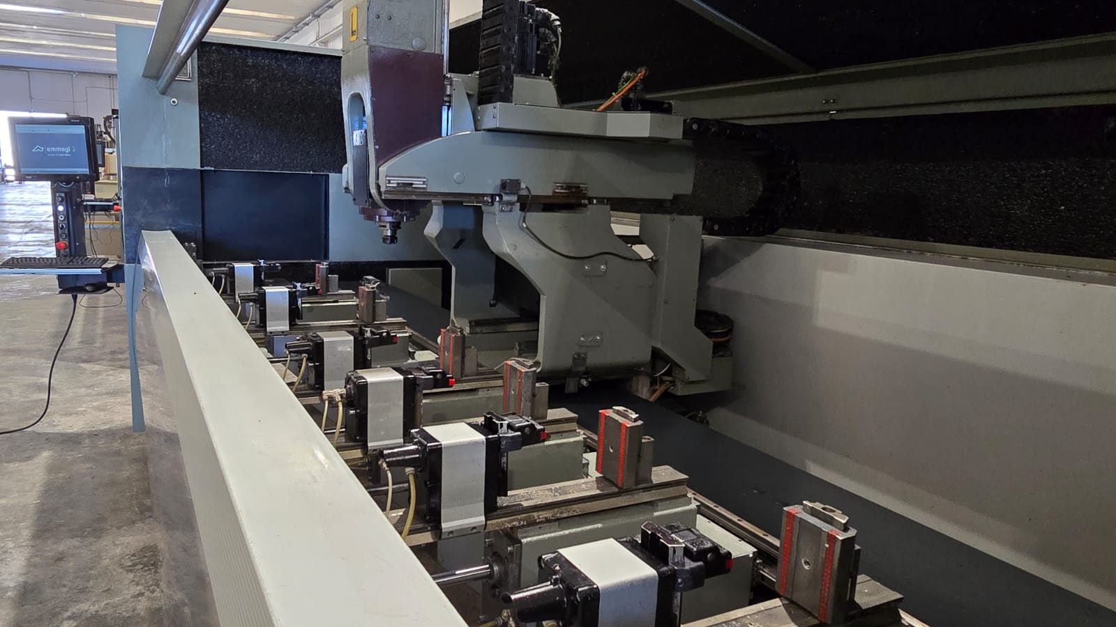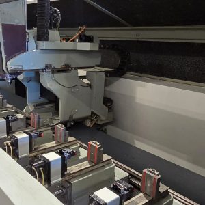 Centro di lavoro 4 assi e spostamento delle morse automatiche