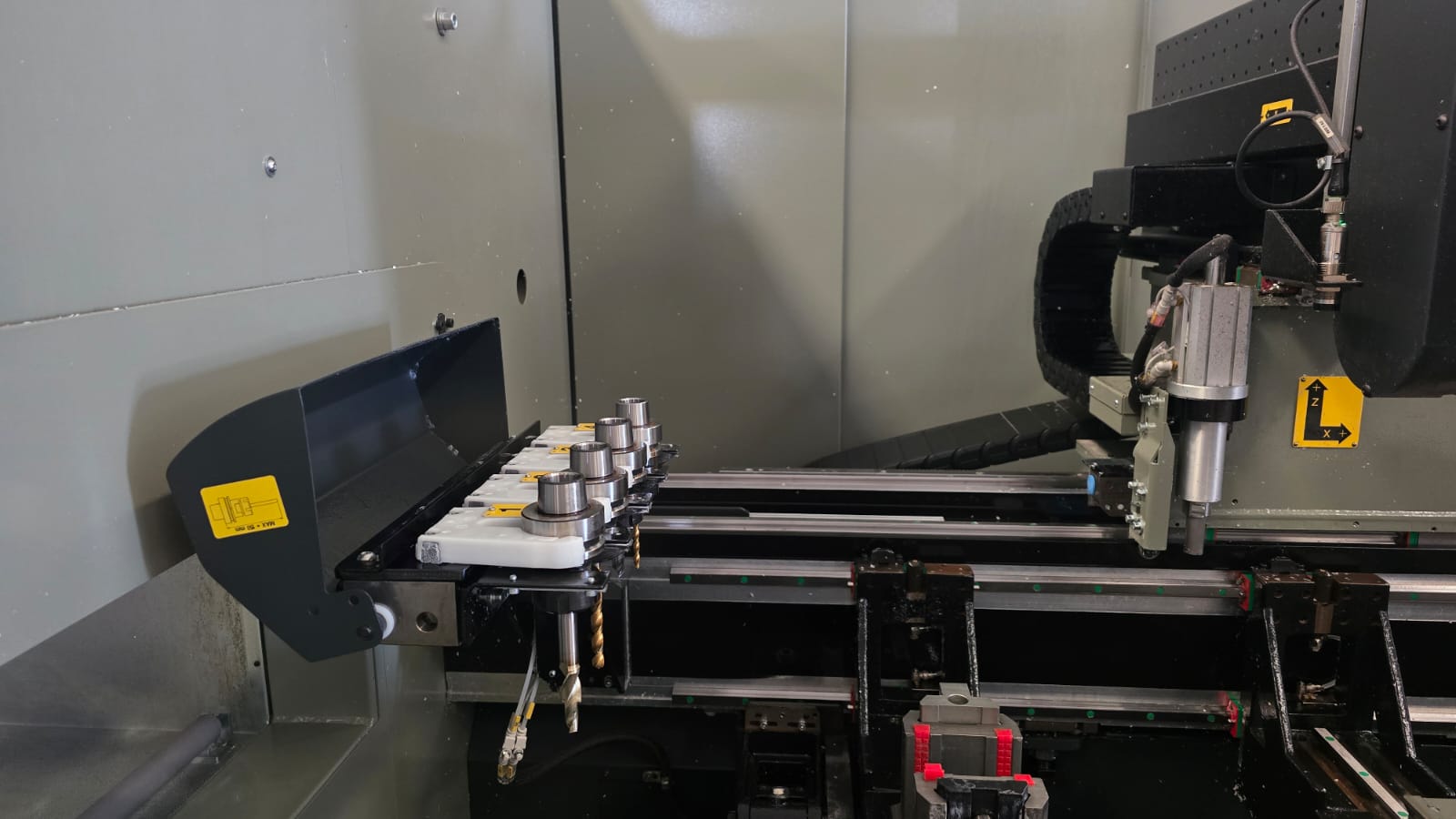 Centro di lavoro CNC a 4 assi con rotazione automatica dell’utensile su tre posizioni fisse che permette di