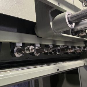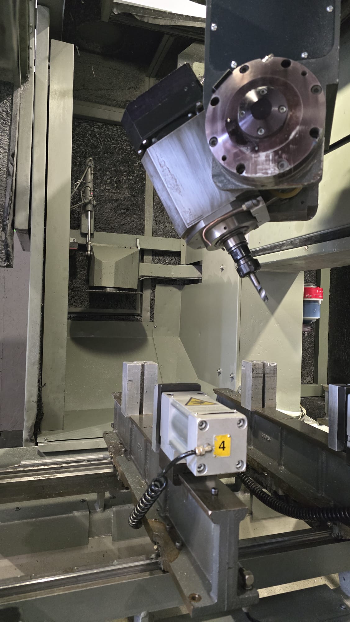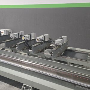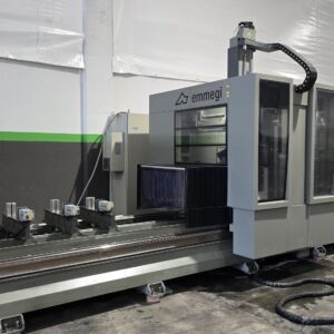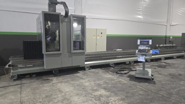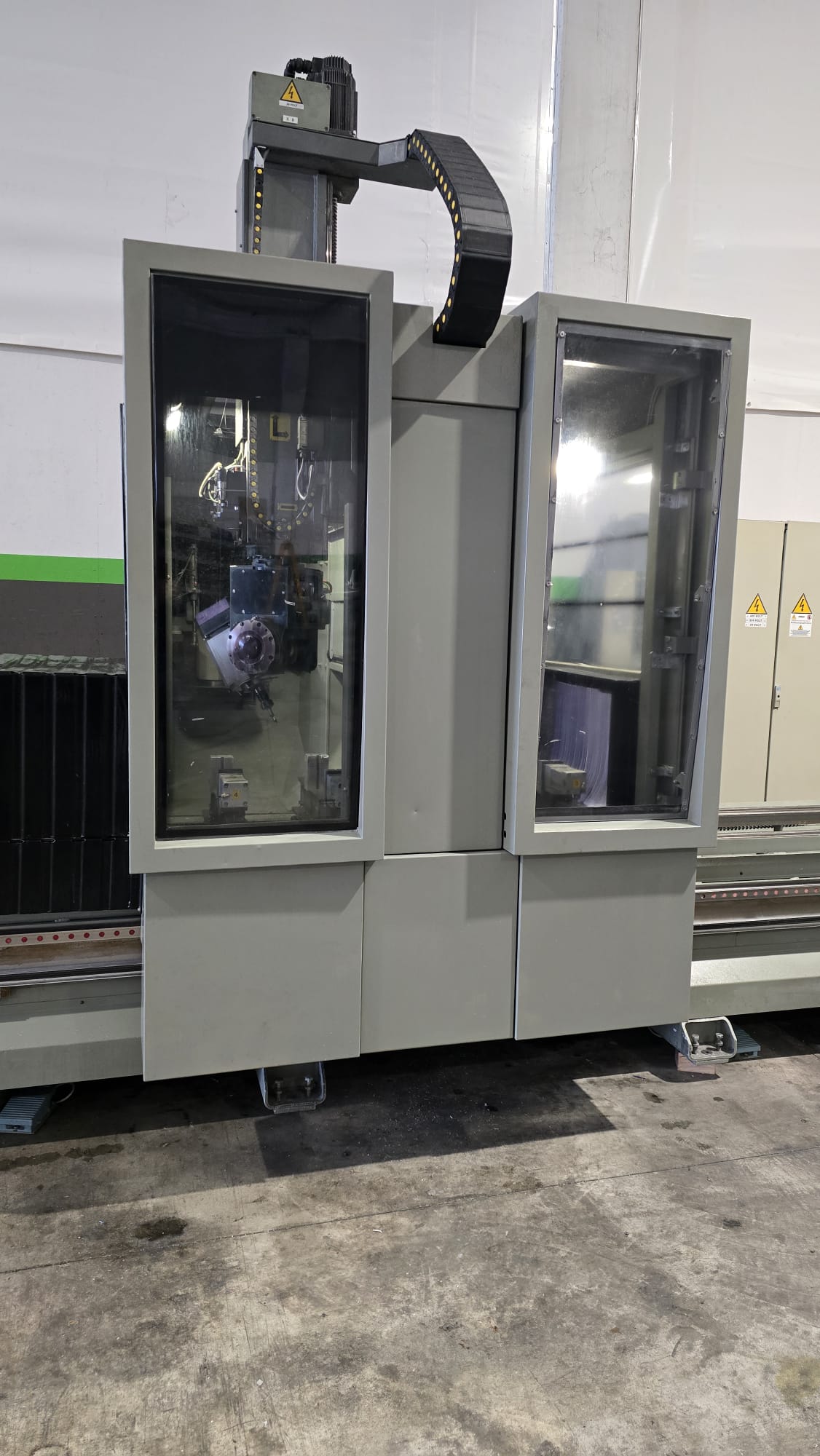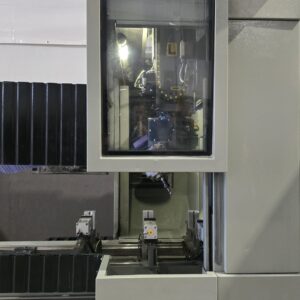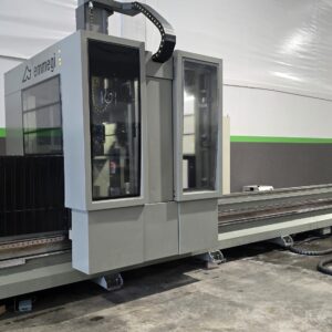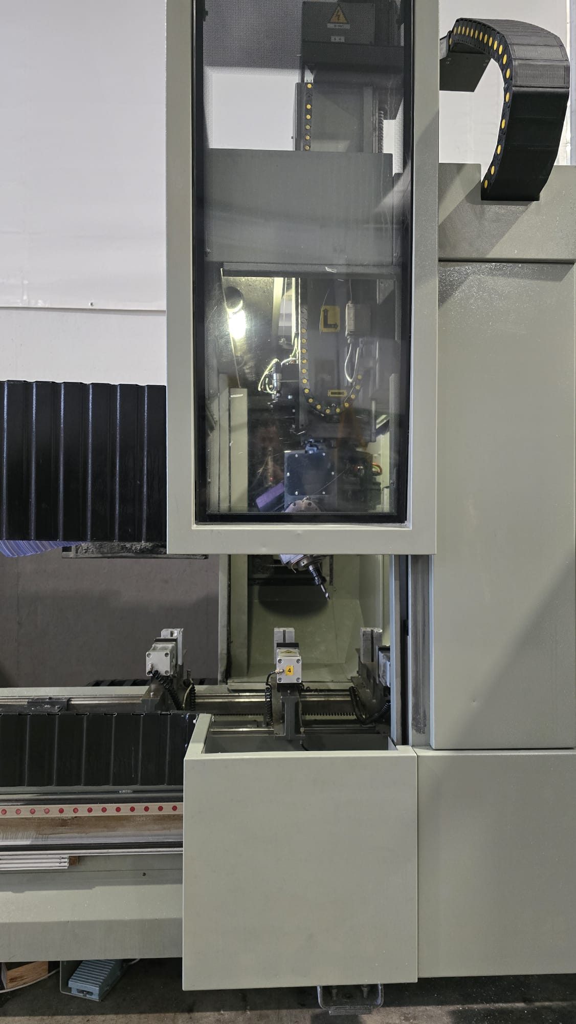 scorre un montante a portale dotato di elettromandrino e magazzino utensili. L’unità di lavoro si compone di un