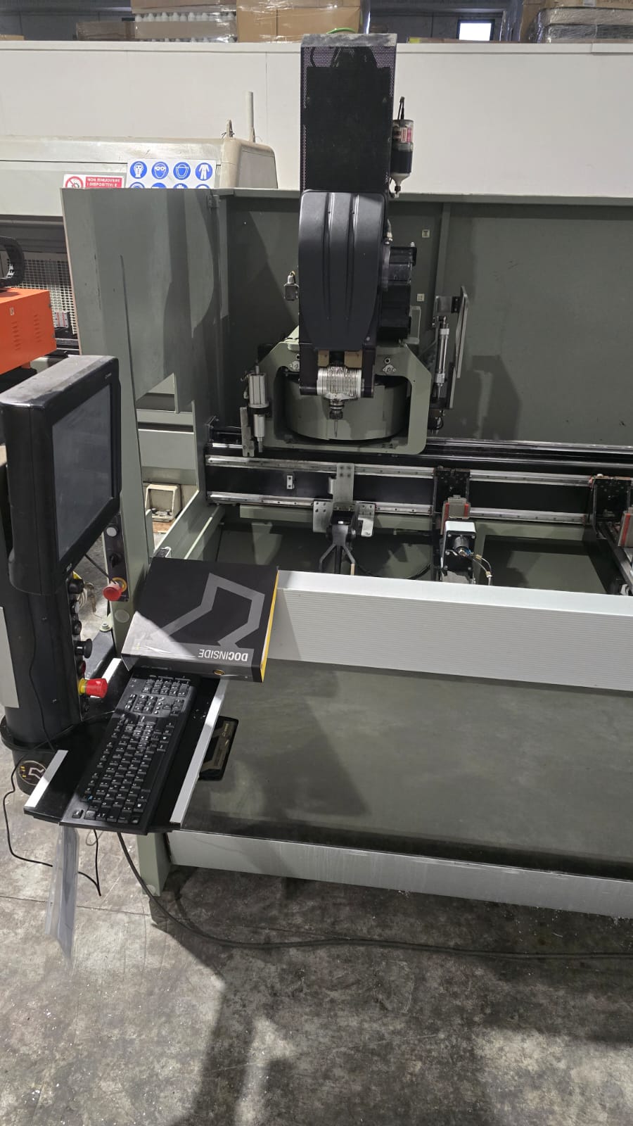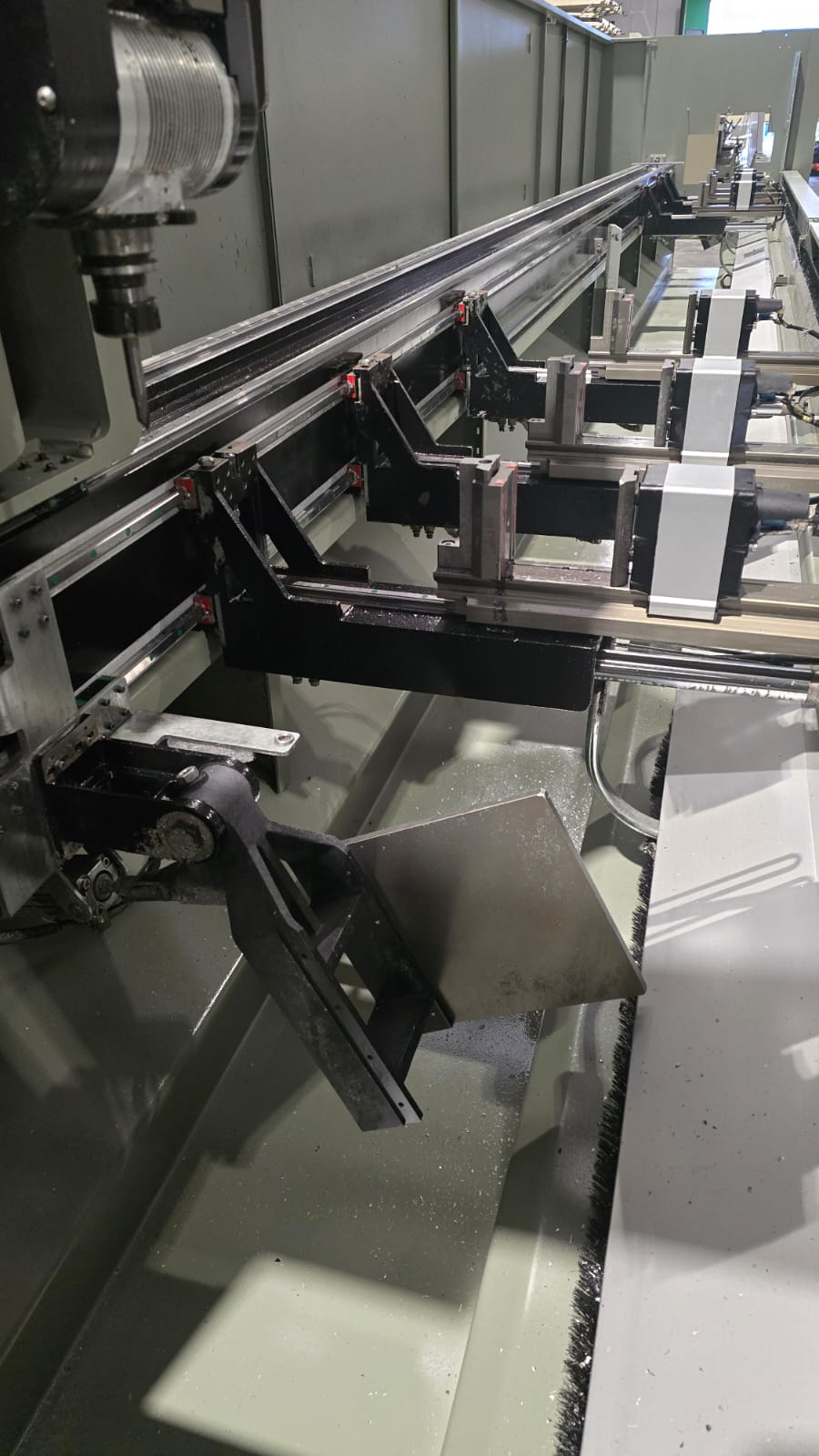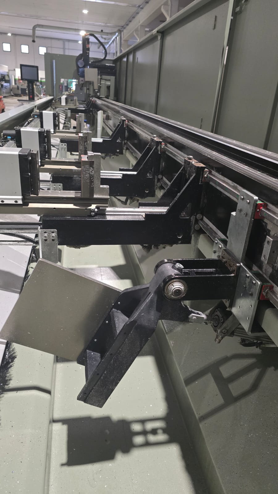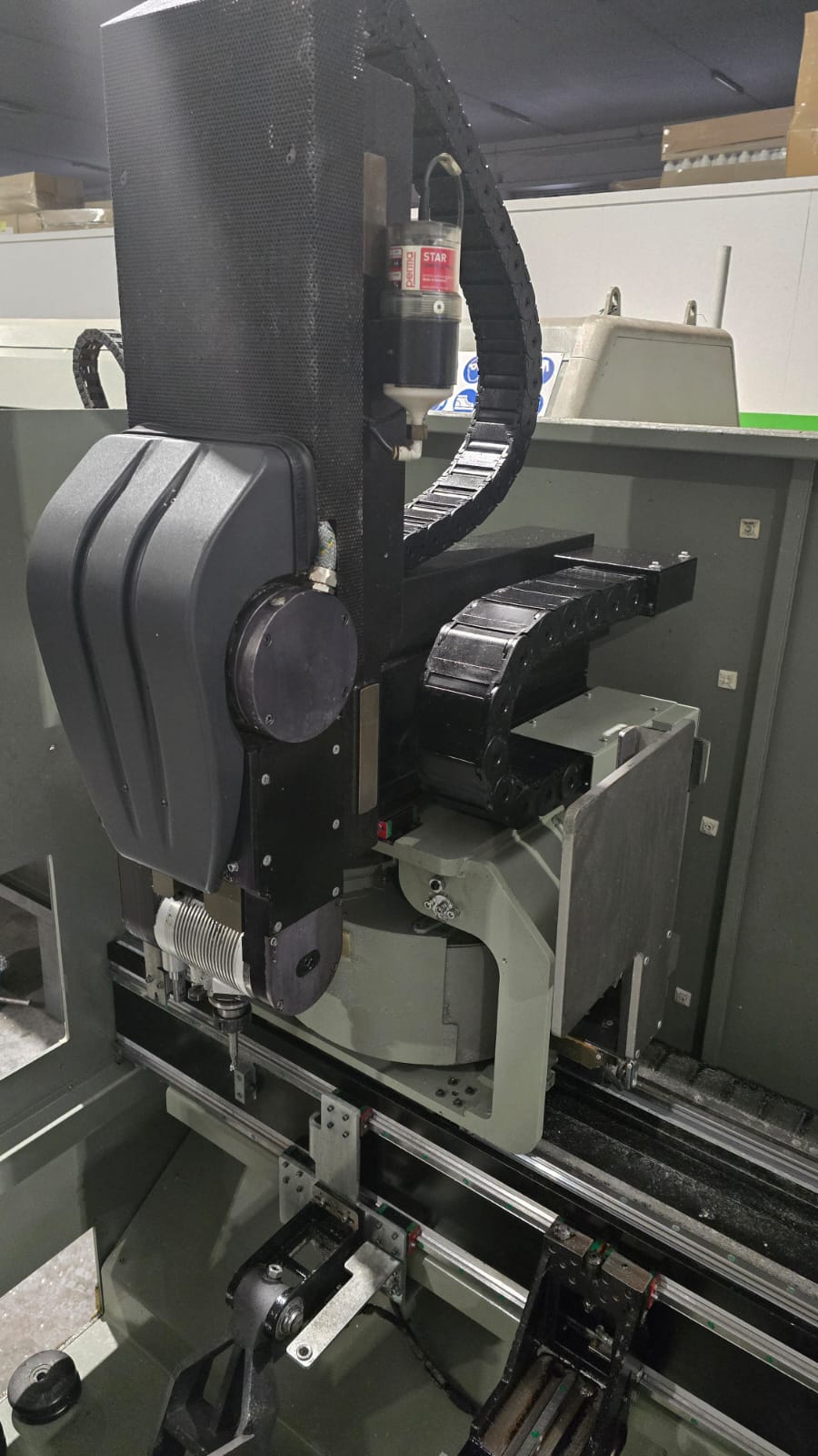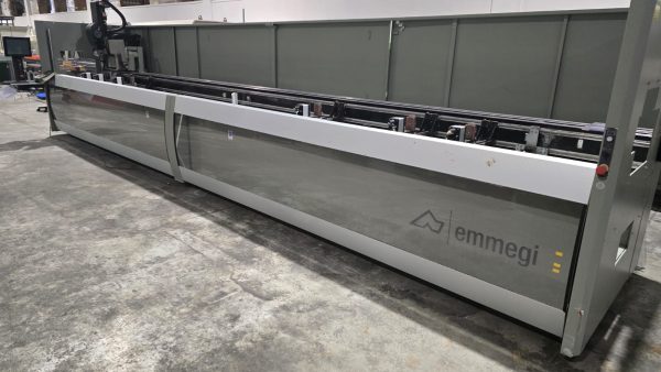 Centro di lavoro CNC a 4 assi controllati, dedicato alla lavorazione di barre o pezzi in alluminio, PVC, leghe leggere in genere e acciaio sino a 2 mm. La macchina può lavorare in modalità monopezzo e multipezzo, con un’area unica di lavoro per barre sino a 7,7 m di lunghezza. Il modello COMET X6 consente di lavorare in modalità pendolare, con due aree di lavoro indipendenti. La macchina dispone di magazzino utensili a 10 posti, a bordo carro asse X, con possibilità di ospitare un’unità angolare e una fresa a disco, per eseguire lavorazioni su 5 facce del pezzo. Il 4° asse CN consente all’elettromandrino di ruotare da 0° a 180°, posizionandosi a qualsiasi angolo intermedio. La macchina può quindi eseguire lavorazioni sulla faccia superiore e su quelle laterali del profilo a qualsiasi inclinazione compresa nel range.