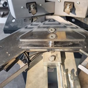 • Regolazione in altezza del piano supporto profili. Posizione indicata da visualizzatore decimale 34 mm