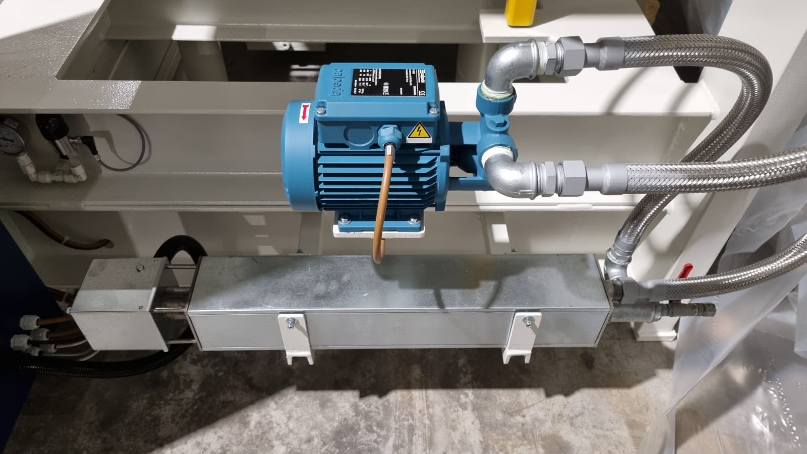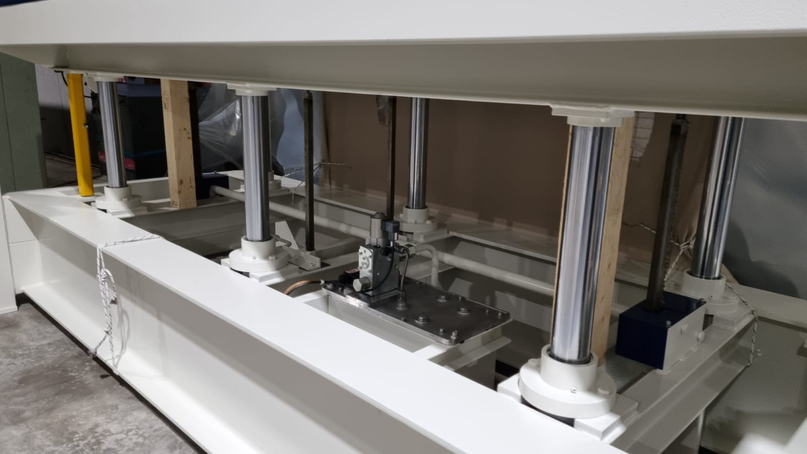Struttura interamente in travi saldate in atmosfera inerte e lavorata con macchine utensili di precisione. Impianto idraulico: gli steli dei pistoni sono cromati a spessore per garantire un perfetto scorrimento ed una maggiore durata nel tempo sia delle guarnizioni di tenuta sia del pistone. Tutti i pistoni sono imbullonati alla struttura per poter, in caso di assistenza o manutenzione, smontarli rapidamente ed effettuare le necessarie operazioni. Centralina ad alta affidabilità con sistema a doppia pompa: una a bassa pressione per una chiusura rapida del piano ed inserimento automatica dell’altro, ad alta pressione, per il raggiungimento della pressione impostata da quadro comandi. Motore della centralina immersa a bagno d’olio per ottenere una migliore lubrificazione e ridurre la rumorosità, evitando qualsiasi possibile danneggiamento da parte di colpi accidentali. Impianto elettrico: quadro comandi completo e funzionale dal quale l’operatore può regolare ed utilizzare tutte le funzioni della pressa.