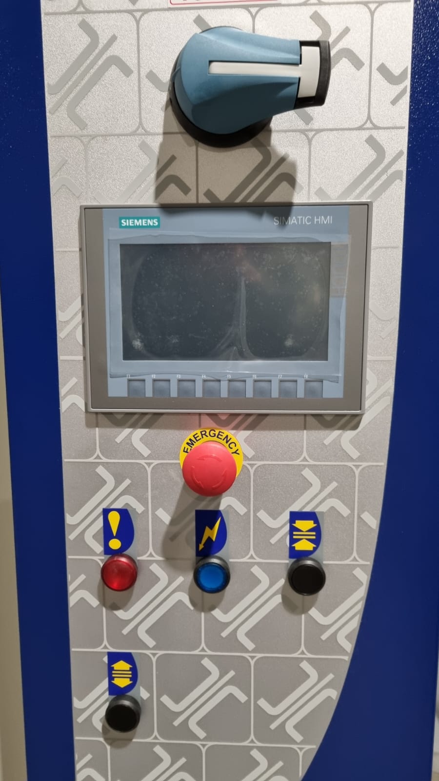 Quadro comandi in ABS con sistema digitale touch screen Siemens di controllo e regolazione di tutte le funzioni della macchina.