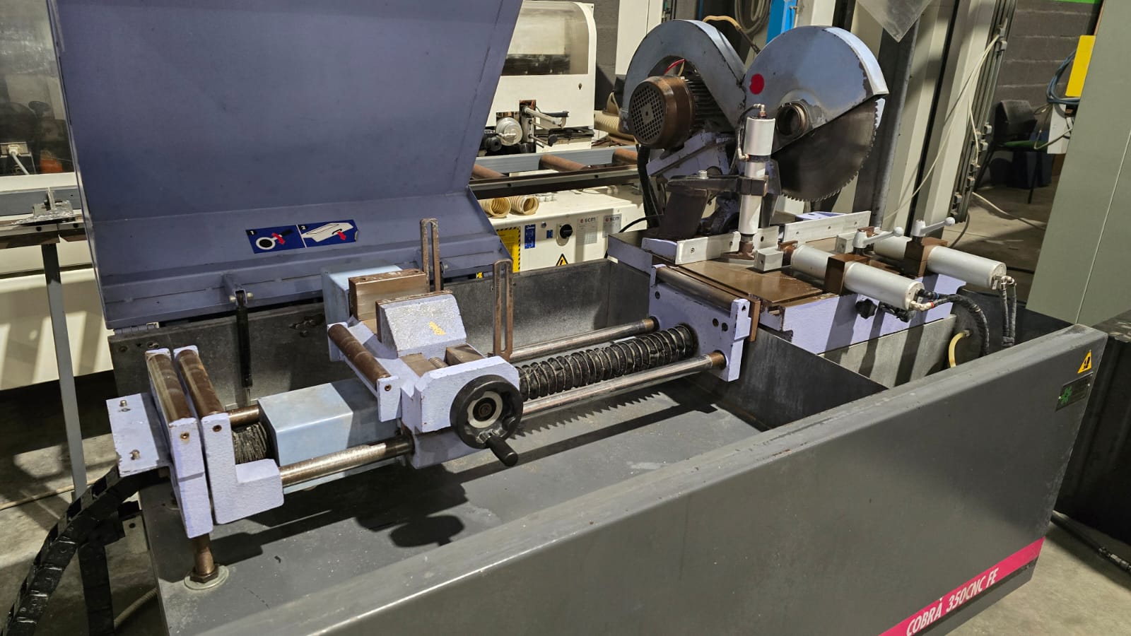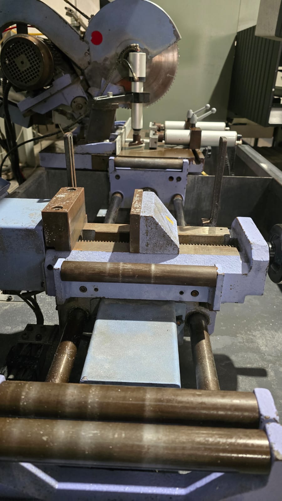 Segatrice automatica elettropneumatica a disco HM con denti elettrosaldati in metallo duro, è la soluzione ideale per il taglio da -45° a +45° di pieni e profilati in alluminio e leghe leggere. La testa di taglio è orientabile sulla verticale per eseguire anche tagli con la testa inclinata da 0° a +45°.