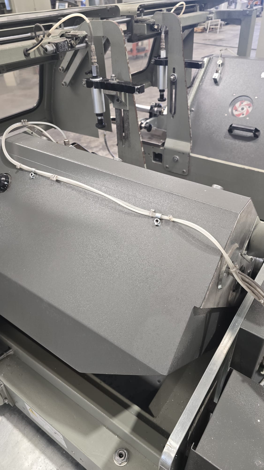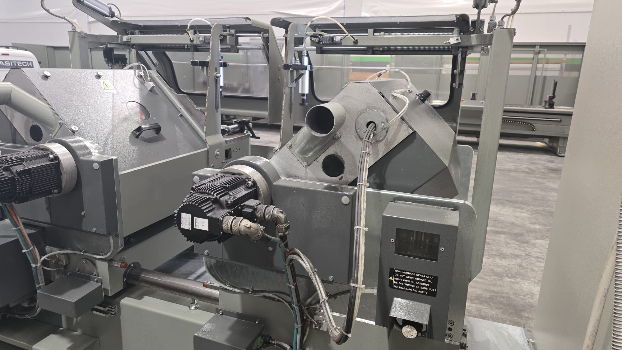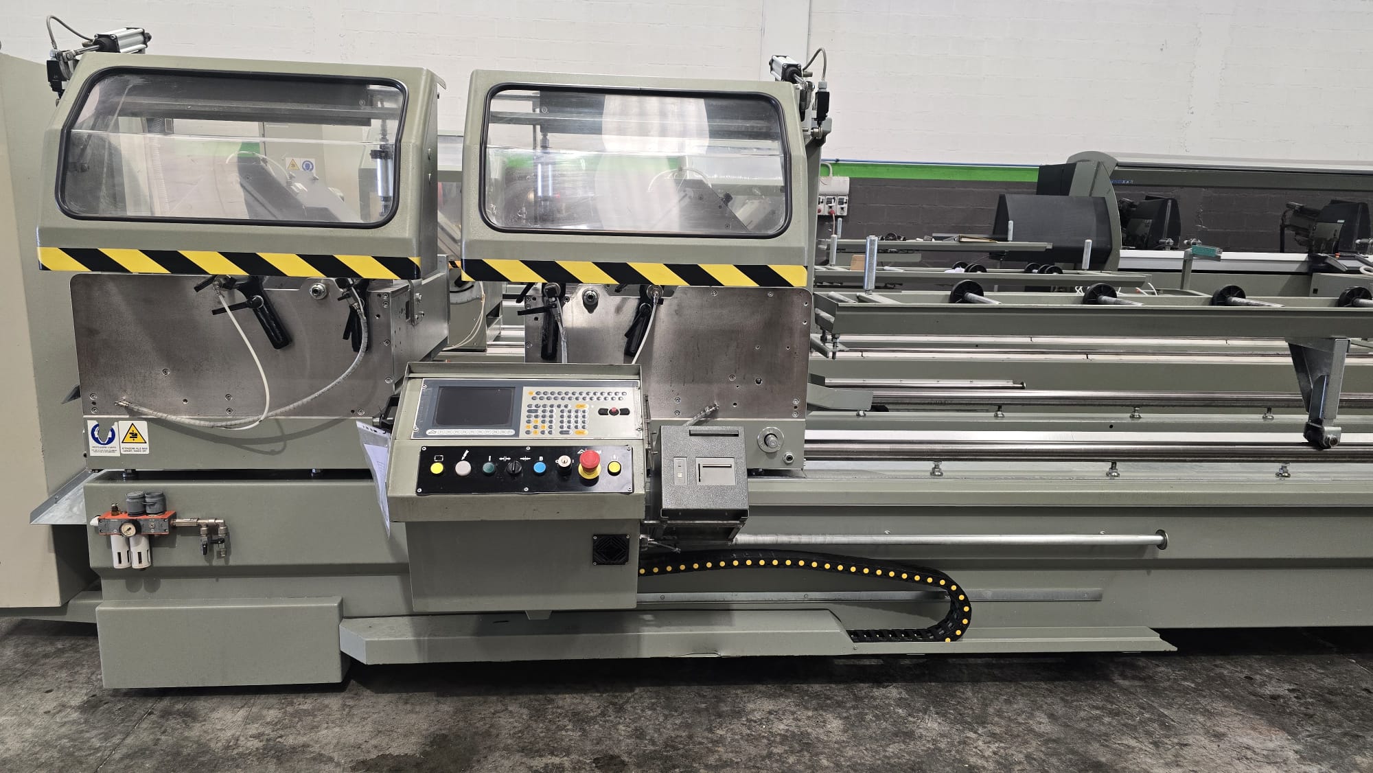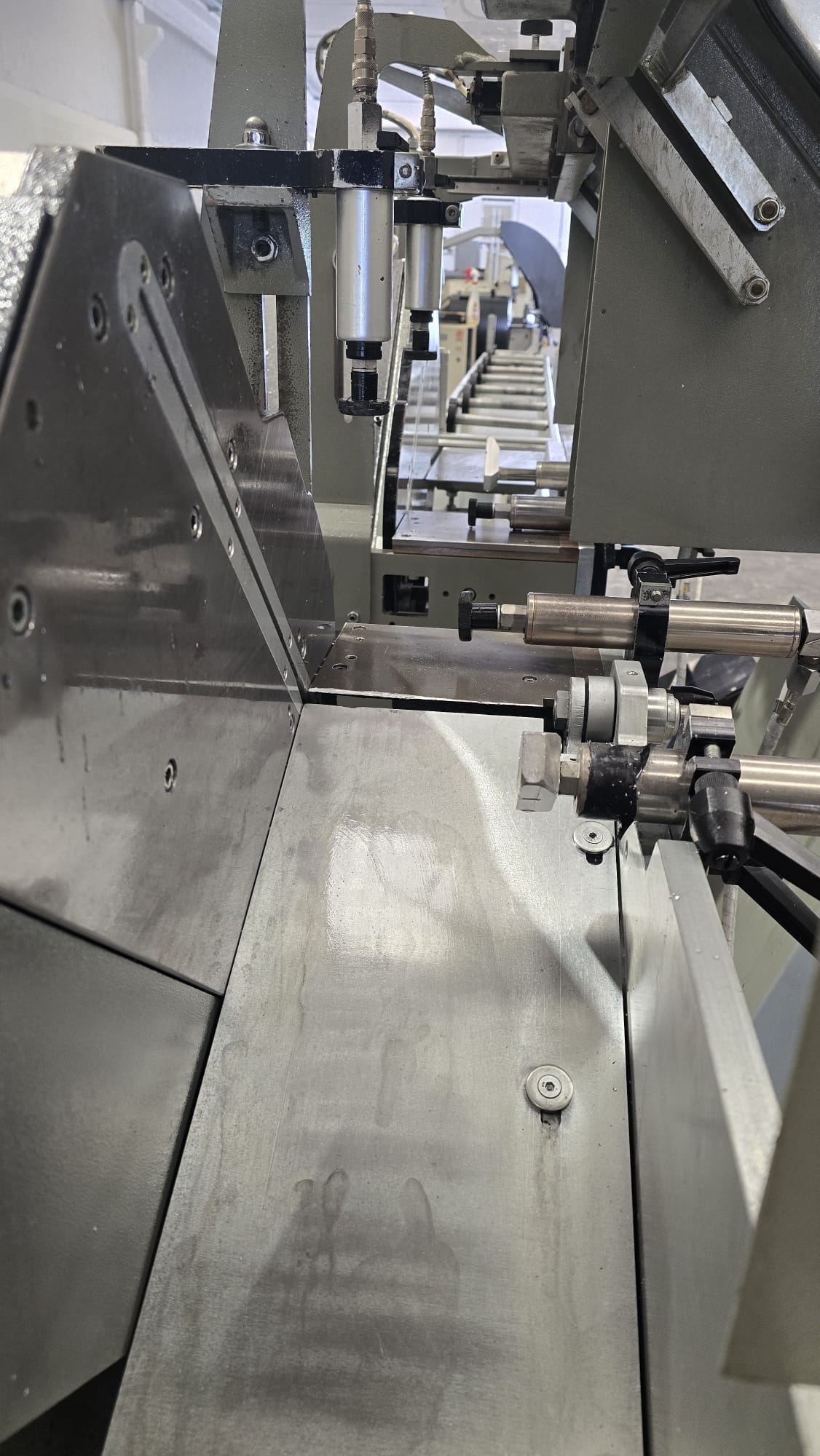 Lunghezza utile di taglio 5000 mm Diametro lame 500 mm Inclinazione elettronica delle teste Inclinazione interna/esterna da 22°30′ a 135 ° Opzione taglio passo passo Etichettatrice