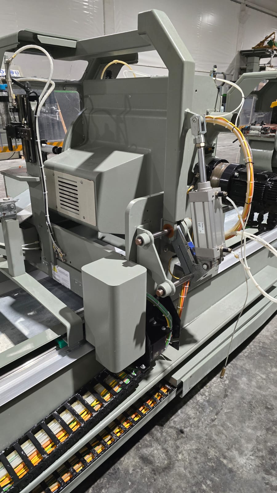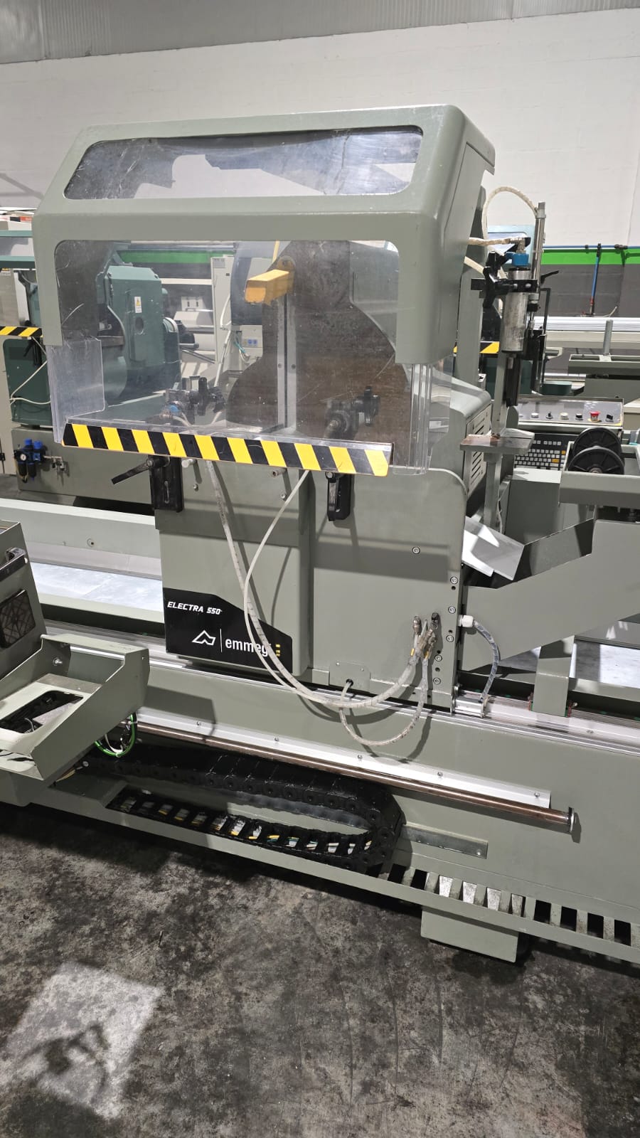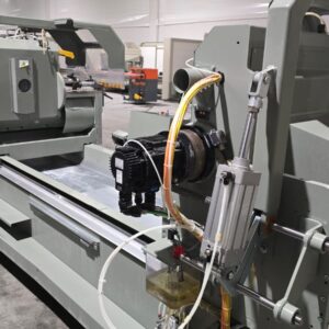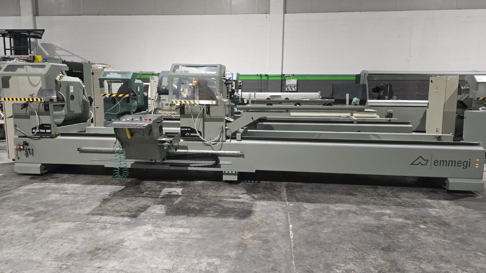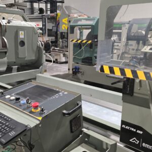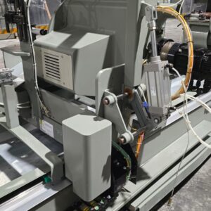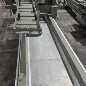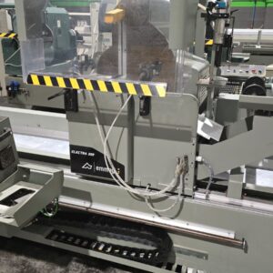 Troncatrice doppiatesta a 3 assi controllati per alluminio, PVC e leghe leggere, con movimento automatico della testa mobile e gestione elettronica di tutte le angolazioni da 45° (interni) a 15° (esterni). L’avanzamento lama è azionato da una coppia di cilindri oleo-pneumatici. Lama da 550 mm. La versione HS (High Speed) prevede un asse X a velocità superiore e tutte le protezioni necessarie alle lavorazioni automatiche anche non presidiate, per ottenere la massima produttività.