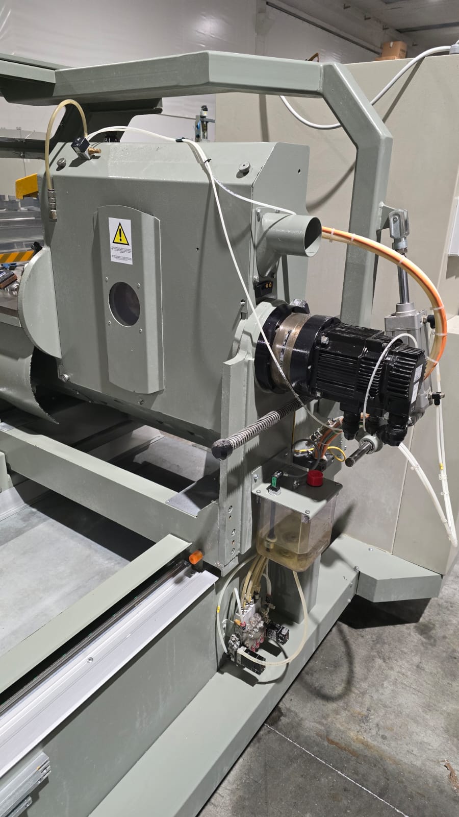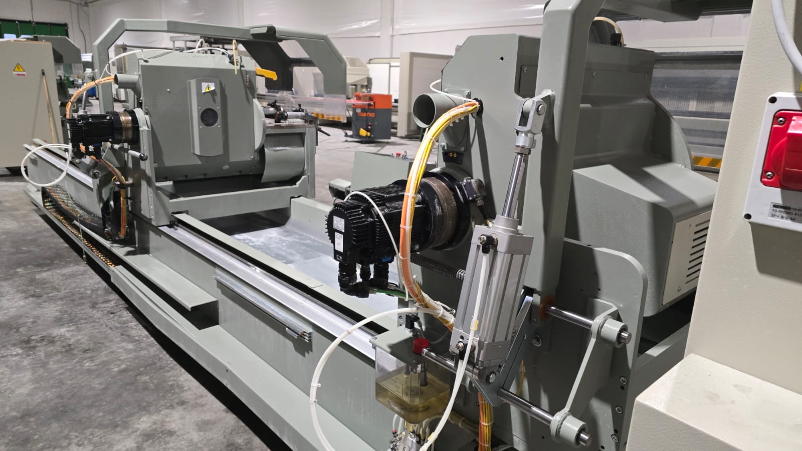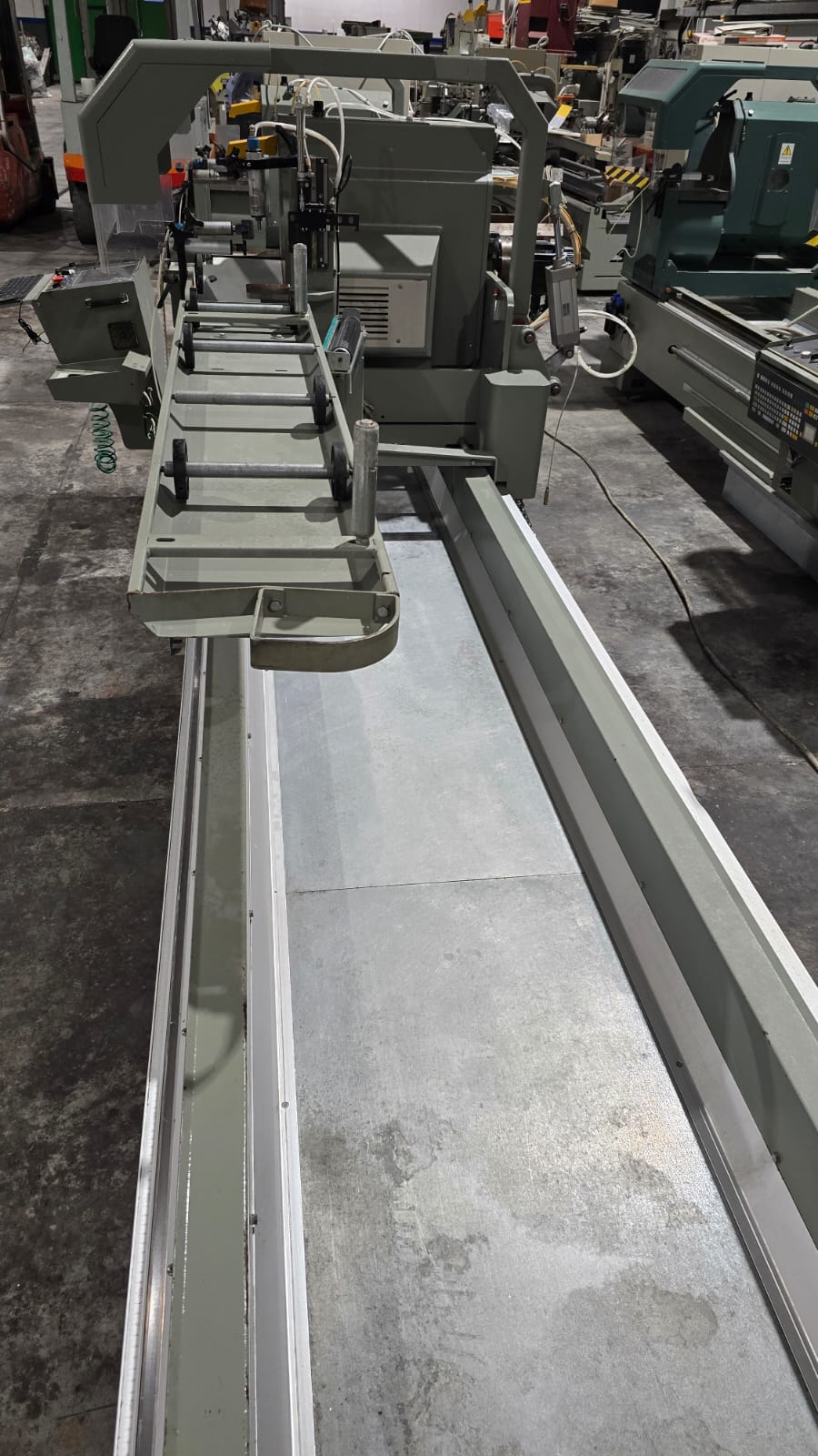 Troncatrice doppiatesta a 3 assi controllati per alluminio, PVC e leghe leggere, con movimento automatico della testa mobile e gestione elettronica di tutte le angolazioni da 45° (interni) a 15° (esterni). L’avanzamento lama è azionato da una coppia di cilindri oleo-pneumatici. Lama da 550 mm. La versione HS (High Speed) prevede un asse X a velocità superiore e tutte le protezioni necessarie alle lavorazioni automatiche anche non presidiate, per ottenere la massima produttività.